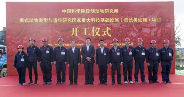 10月27日,模式动物表型与遗传研究国家重大科技基础设施(灵长类设施)项目开工仪式在昆明动物研究所花红洞园区隆重举行。中国科学院昆明分院院长周杰,中国科学院昆明动物研究所党委书记沈华,中国科学院昆明动物研究所所长、工程指挥部总指挥姚永刚,中国农业大学主任、项目副经理刘竹青,集团公司党委书记、董事长陈先瑞,总工程师陈劲出席开工仪式。同时参加的还有项目监理方,设计方代表及项目部成员。