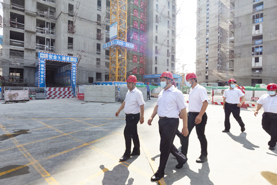 8月7日,顶着炎炎烈日,集团公司党委书记、董事长陈先瑞亲赴我公司承建的通州怀柔项目一线工地,现场视察指导工作,并代表集团公司看望慰问战斗在一线的广大员工。合约预算部部长孙佳和项目负责人陪同视察。