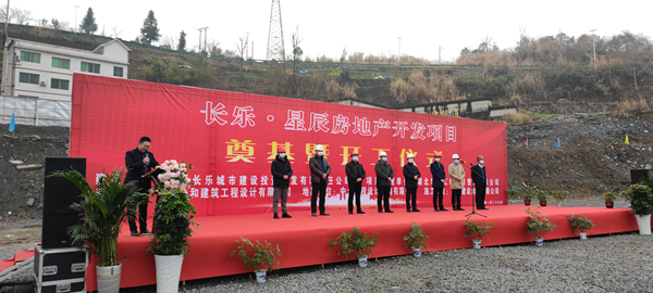 2021年1月26日上午,由mk手机在线登录承建的长乐▪星辰住宅项目奠基暨开工仪式在项目现场热烈举行。湖北省宜昌市五峰土家族自治县住房和城乡建设局副局长陈白华、县质量安全监督站站长邓简涛、mk手机在线登录五峰长乐▪星辰项目经理王国云,项目参建各方及新闻媒体共40余人出席。宜昌市长乐城市建设投资开发有限责任公司总经理刘鹏主持。
