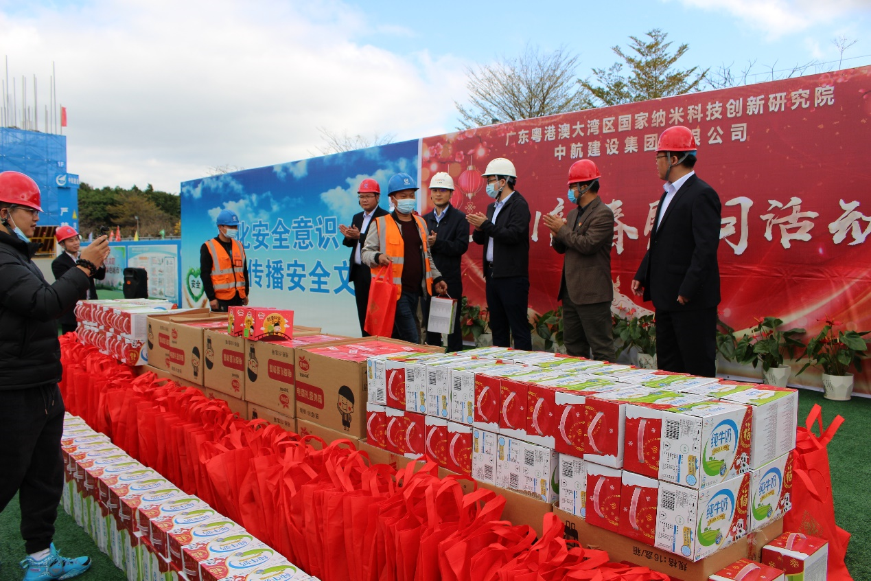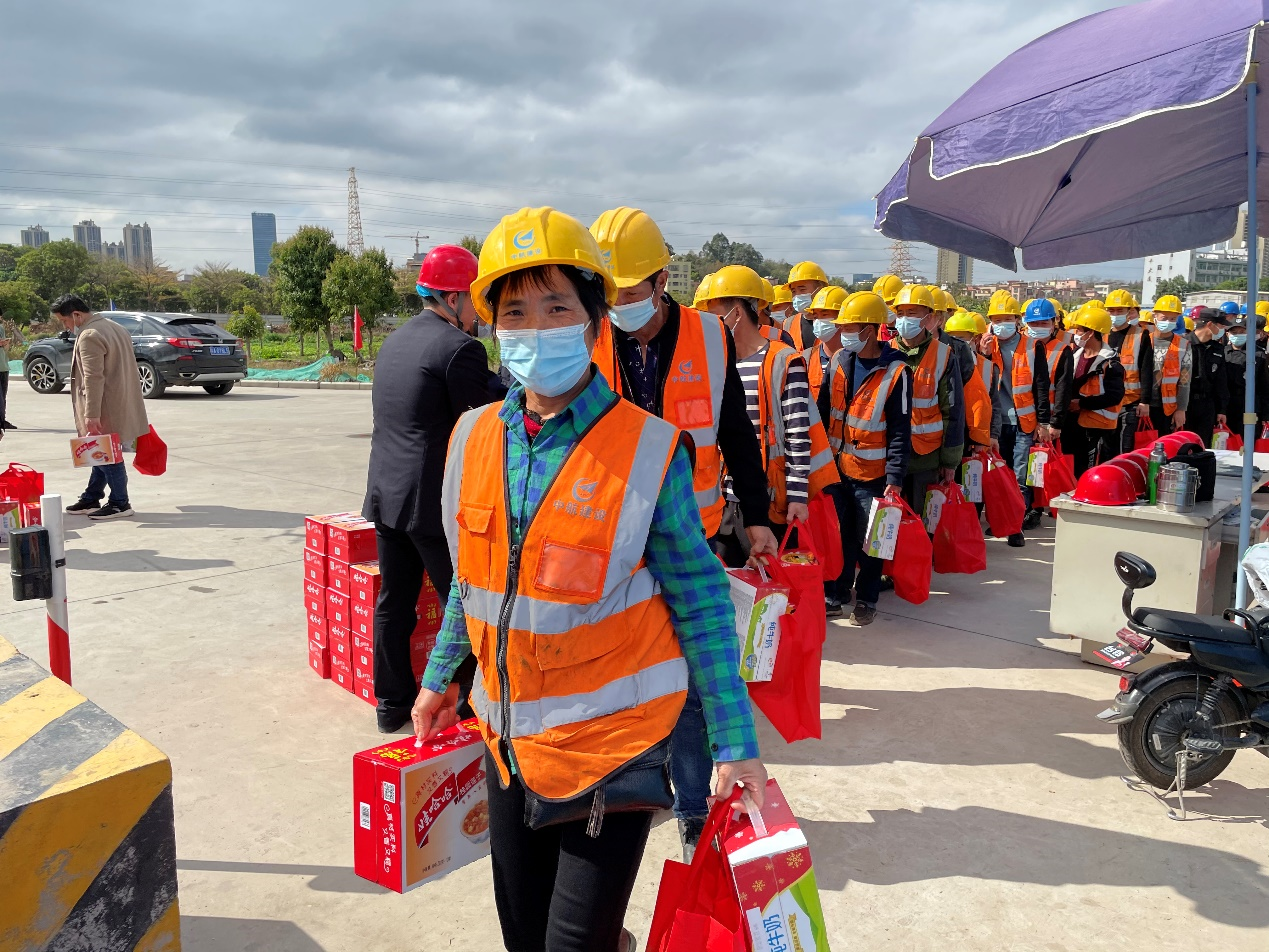 大年三十闹新春,生产一线迎新年。为响应地方政府“留穗过年”的号召,2021年2月11日,mk手机在线登录南方工程有限公司联合广州市黄埔区鱼珠街道办事处、广州纳米产业投资有限公司、广州珠江mk手机在线登录监理有限公司,组织开展“2021新春慰问活动”。