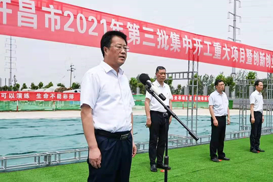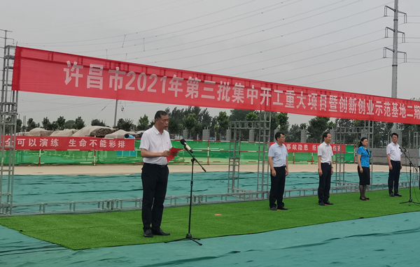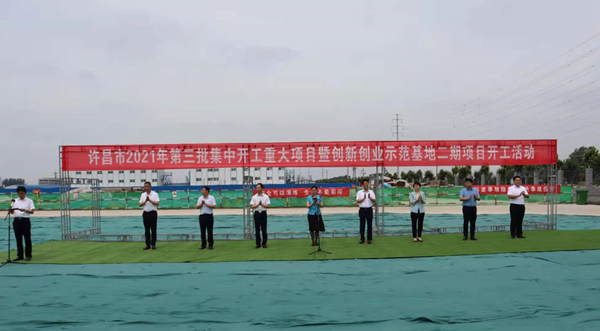 7月10日上午,河南省许昌市2021年第三批集中开工重大项目暨创新创业示范基地二期项目开工仪式顺利举行。许昌市委常委、纪委书记、监委主任方婷,魏都区委书记李朝锋,区人大常委会主任申健民,区政协主席杜晓辉,区委常委、区委办主任程中山,区委常委、区纪委书记、区监委主任徐光,魏都产业集聚区管委会主任楚文选,mk手机在线登录河南分公司总经理黄辰,魏都区政府相关部门、投资公司、产业集聚区、霸陵办事处等单位负责人参加活动。区委常委、常务副区长张挪威主持仪式。