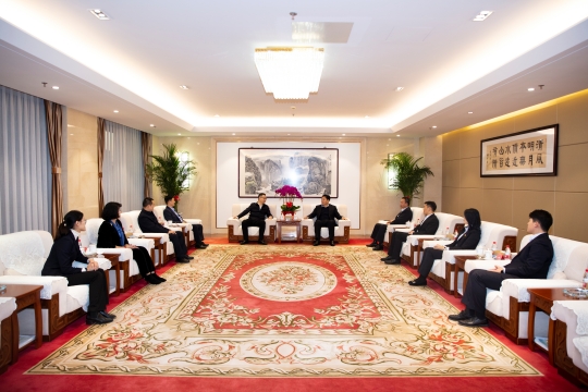 11月14日,新疆维吾尔自治区乌鲁木齐市沙依巴克区委书记李翔,区委常委、副区长鹿朋等一行领导莅临集团公司考察指导,深入洽谈推动项目合作。集团公司党委书记、董事长陈先瑞,党委副书记王建红,副总经理马晓进等相关领导迎接陪同。